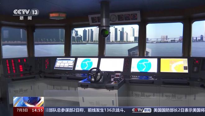 舵轮右手边的手柄,用来控制主机转速。操纵台的左右两边,为雷达监测显示屏幕,代替人眼感知环境,在雾天航行、夜间航行时给驾驶员提供便利。它以大型集装箱船驾驶室为原型,尽可能还原现代化船舶驾驶工作的真实场景。