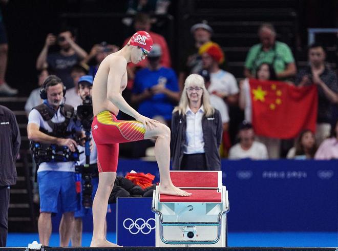 ↑中国选手潘展乐在比赛前。