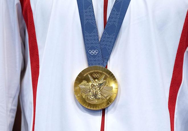 ↑这是7月31日拍摄的中国选手潘展乐获得的金牌。新华社记者 杜宇 摄
